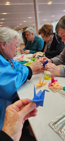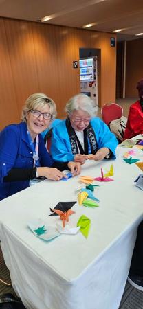 Kathleen joined in the Japanese Tea Ceremony, and learned to make origami paper cranes, which will be taken to Nagasaki as a peace offering.