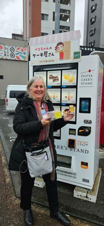 Here's Barbara exploring Japanese modern culture. There are vending machines on seemingly every street corner, selling everything one can imagine.