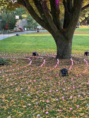 The entire lawn is done in lights with light projected onto the tree, and with classical music playing