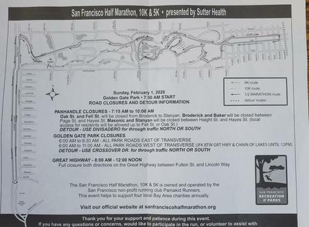 "If you are leading a SF tour on Sunday, February 1, note road closures for the San Francisco Half Marathon. Many streets in/near Golden Gate Park and the Panhandle will be affected during the morning hours."